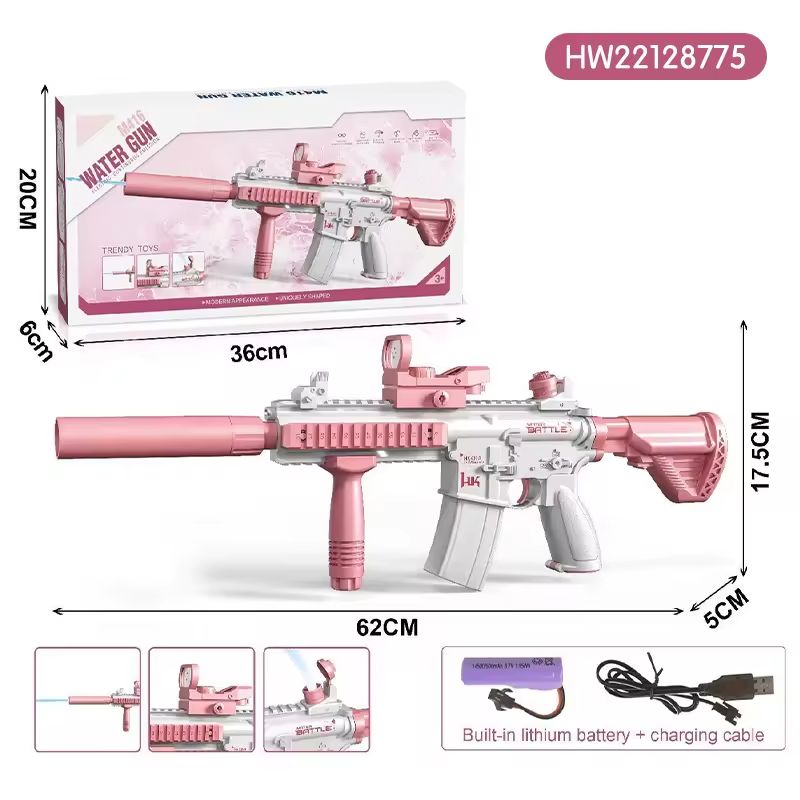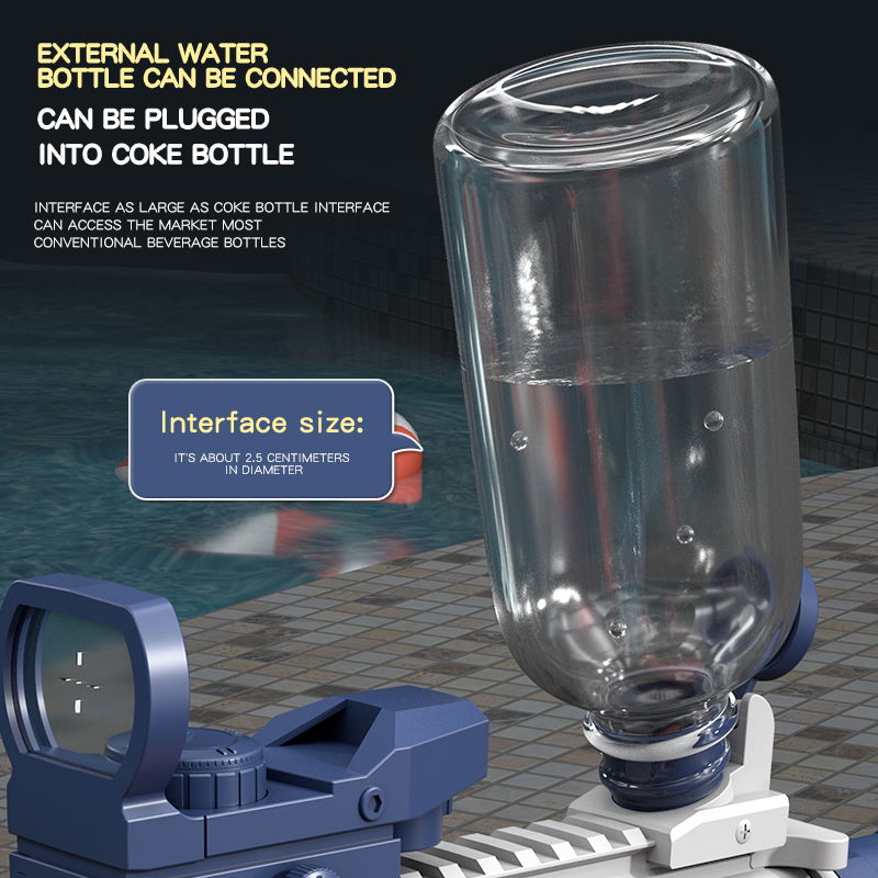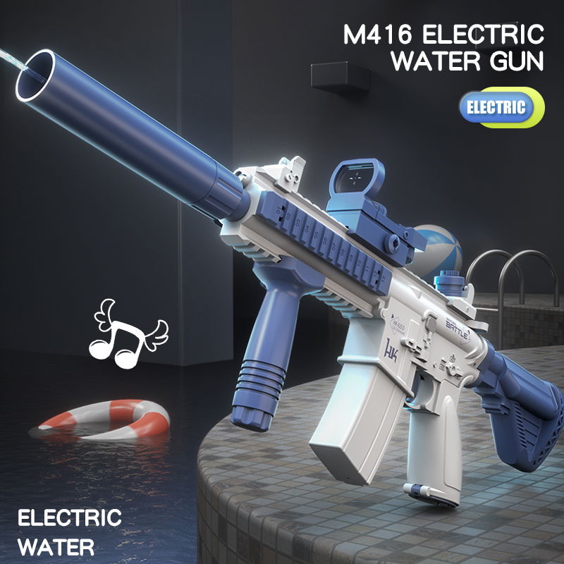 Pistola de agua, water gun, pistola automática de agua, water blaster, beach toy, juguete de playa, juguete acuático, pistola eléctrica, verano, juego piscina, diversión veraniega, blaster continuo, luz LED, rapid fire water gun.