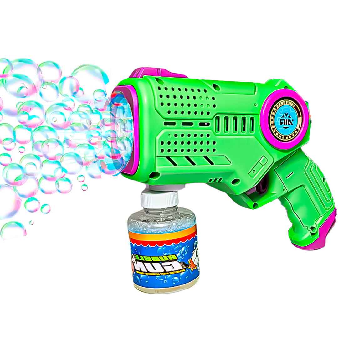 Su diseño ergonómico y ligero permite que los niños la manejen con facilidad, fomentando la coordinación y el juego activo. Fabricada en plástico resistente, la Bubble Gun incluye líquido para burbujas, asegurando que la diversión comience de inmediato. Además, cuenta con luces que iluminan cada burbuja, añadiendo un toque mágico a la experiencia.