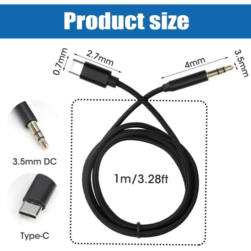 Cable Mallado Tipo C A Conector Para Auriculares Auxiliar 3.5mm Macho