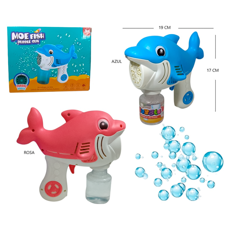 ¡Sumérgete en un mundo de diversión sin fin con nuestro Burbujero Automático Pistola de Burbujas de Delfín! Este encantador juguete en forma de delfín hará que las horas de juego de tu pequeño estén llenas de risas y asombro. Con solo presionar un botón, esta pistola mágica lanza una cascada de burbujas brillantes que encantará a niños y niñas por igual. Características destacadas: - Diseño adorable: Con una forma de delfín amigable y colores vivos, este burbujero captará la atención de los más pequeños al instante. Fácil de usar: Solo añade la solución de burbujas, presiona el botón y observa cómo el delfín cobra vida, llenando el aire con burbujas iridiscentes. - Diversión segura: Fabricado con materiales no tóxicos y un diseño ergonómico, es perfecto para manos pequeñas y mentes curiosas. Ideal para todas las ocasiones: Perfecto para fiestas, tardes en el parque o simplemente para añadir un poco de magia a un día cualquiera. - Con el Burbujero Automático Pistola de Burbujas de Delfín, cada momento se convierte en una aventura mágica. ¡Regálale a tu hijo la alegría de perseguir burbujas y crear recuerdos inolvidables!