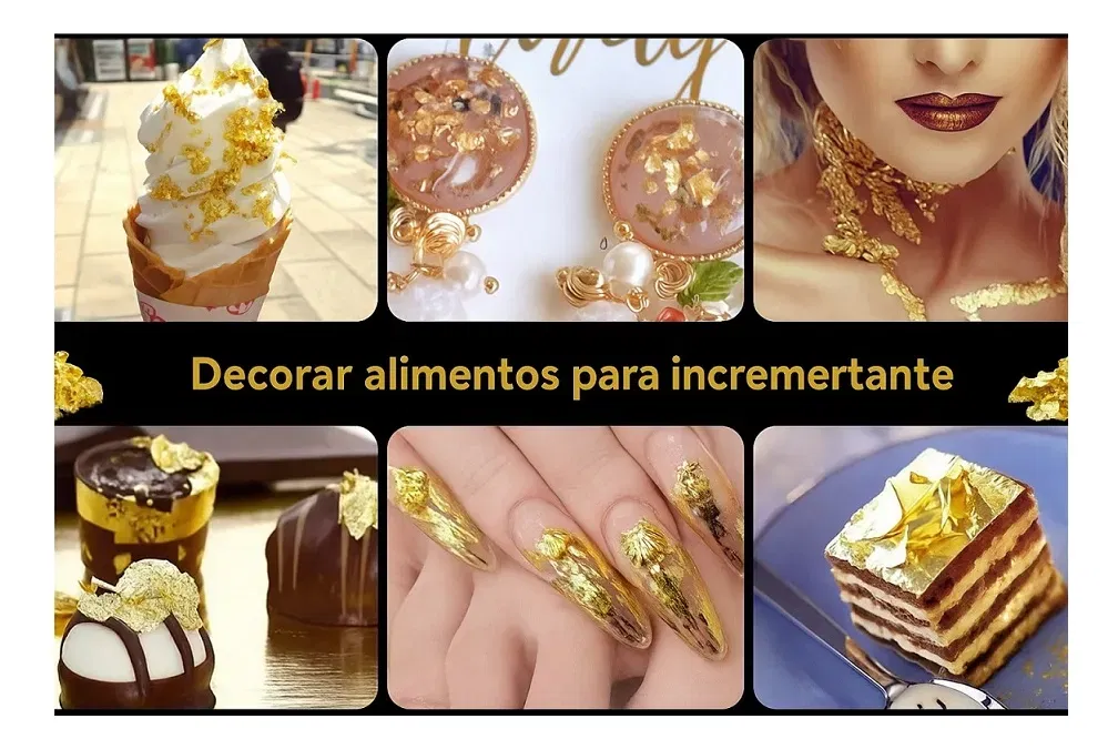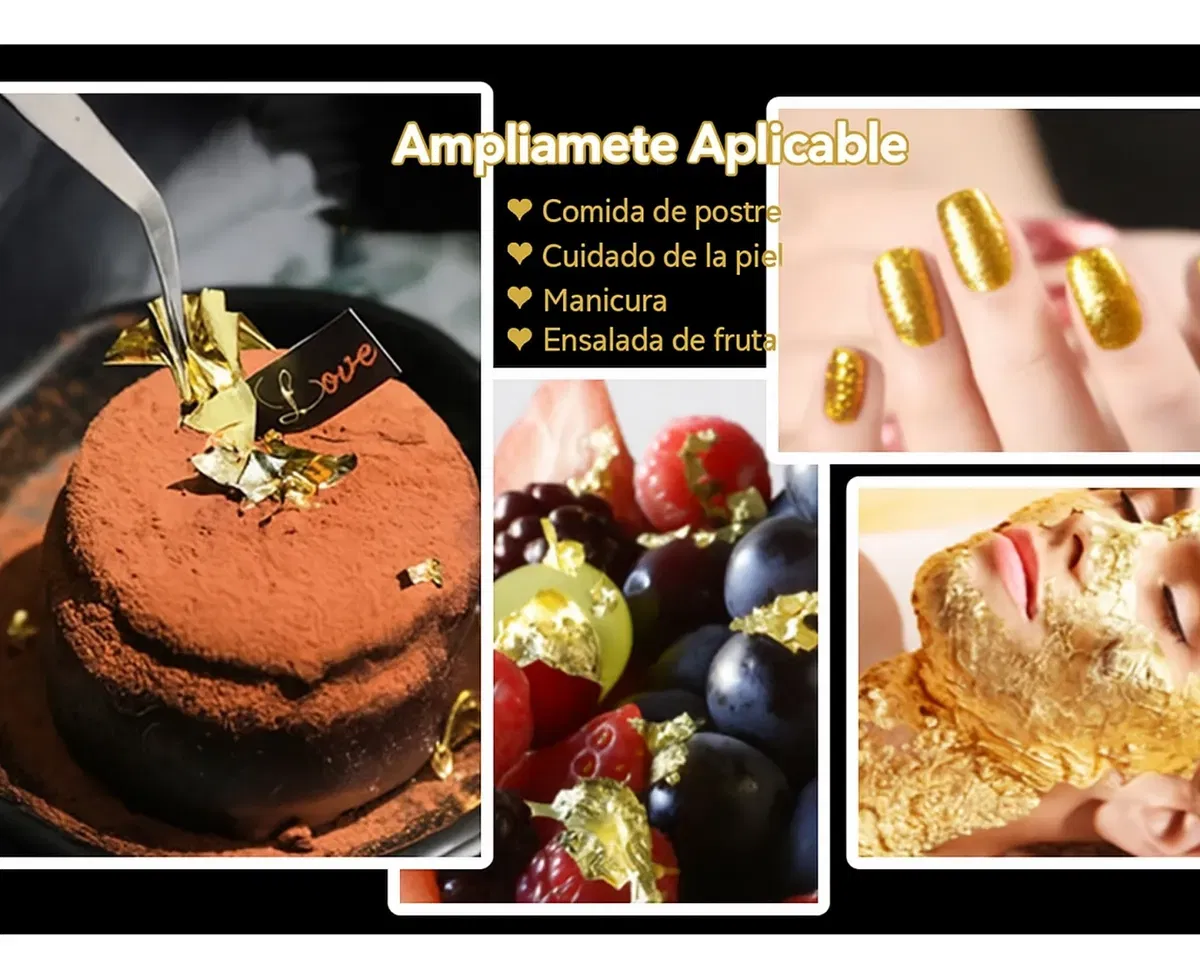 Dale a tus creaciones un toque de lujo con la Lámina de Oro Comestible Dorado, ideal para elevar la presentación de postres, tortas, cupcakes, chocolates y platos gourmet, además lo puedes usar para decorar y darle estilo a tus uñas. Elaborada con materiales de alta calidad y totalmente segura para el consumo, esta lámina combina elegancia, sofisticación y facilidad de uso. Su acabado brillante transforma cualquier preparación en una experiencia visual única, perfecta para bodas, cumpleaños, celebraciones y eventos especiales.