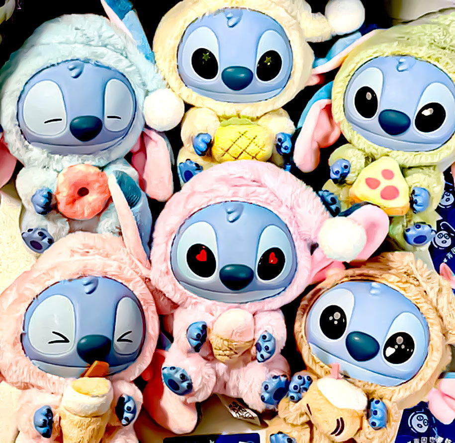 Disfrutá de esta encantadora colección inspirada en el adorable personaje de Disney, donde cada caja contiene un Stitch diferente, vestido con suaves trajes de felpa y sosteniendo dulces bocadillos antes de dormir.