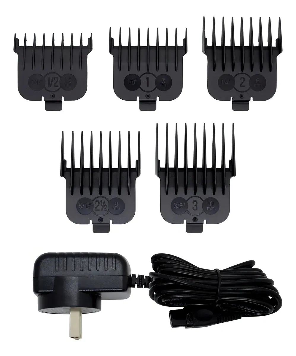 CARACTERÍSTICAS: - Potencia: 11 W - Voltaje: 100-240V - Tiempo de carga: 1,5 horas - Tiempo de uso: 3,5 horas - Velocidad: 8200RPM - Nivel de corte ajustable: 0 – 3,5 mm. - La tapa posterior del logotipo cuenta con luces LED que indican el nivel de energía.