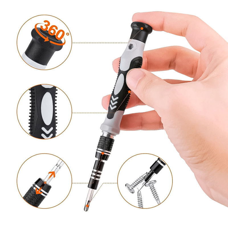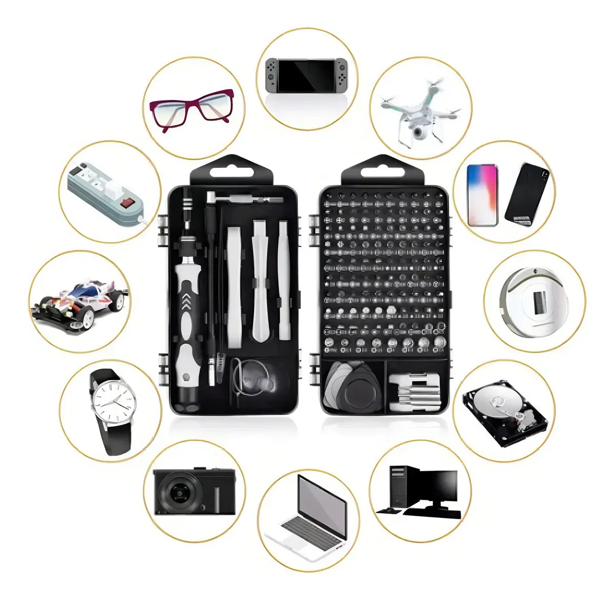 Con este kit de herramientas de precisión 115 en 1, tendrás todo lo necesario para realizar reparaciones rápidas y profesionales en cualquier momento y lugar. 👨🔧🔋