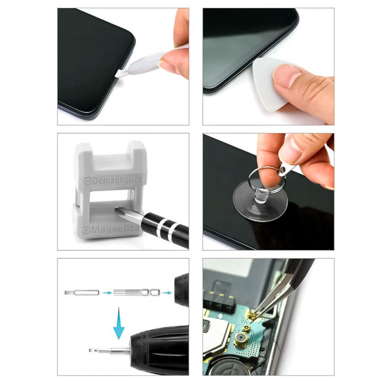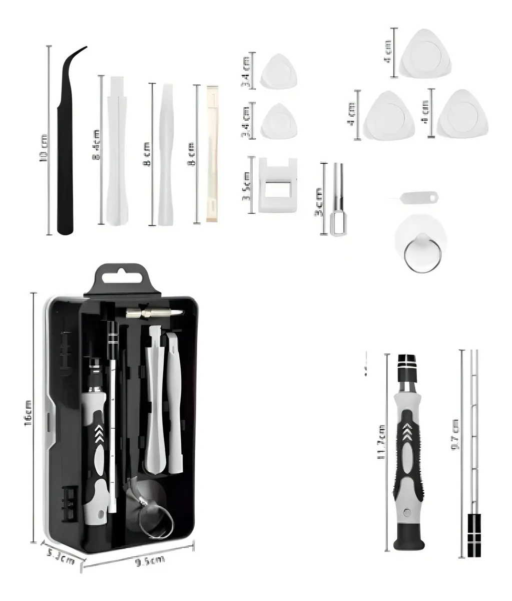 Diseñado para reparar celulares, laptops, relojes, consolas, cámaras, electrodomésticos y más, este completo kit de 115 piezas ofrece todo lo necesario en un solo estuche compacto y portátil.